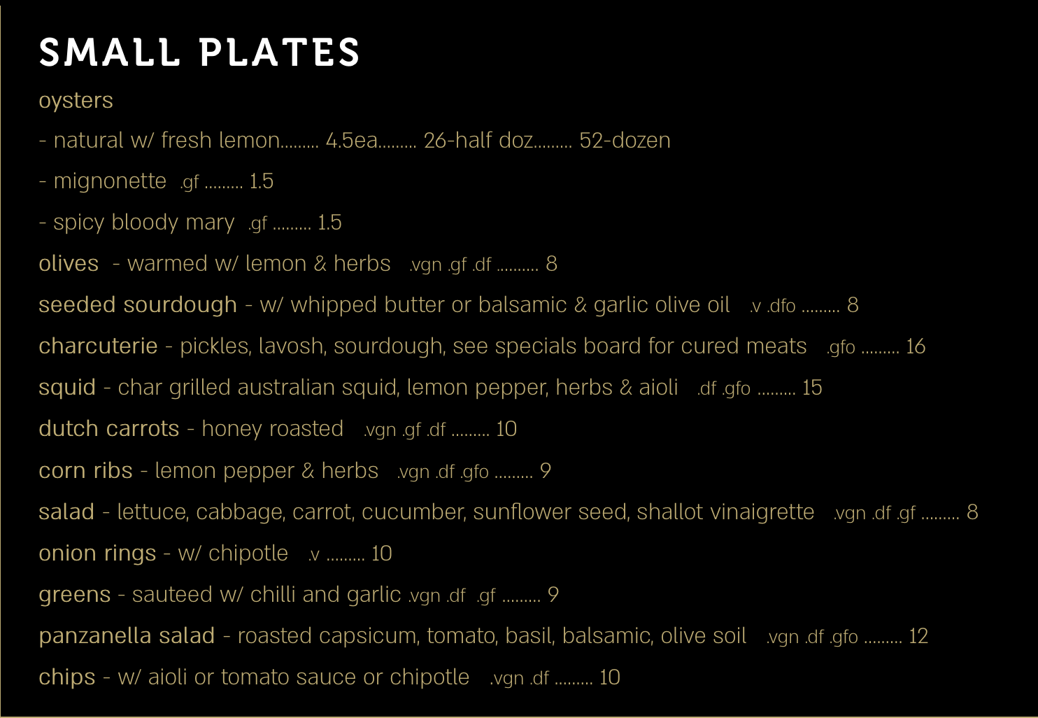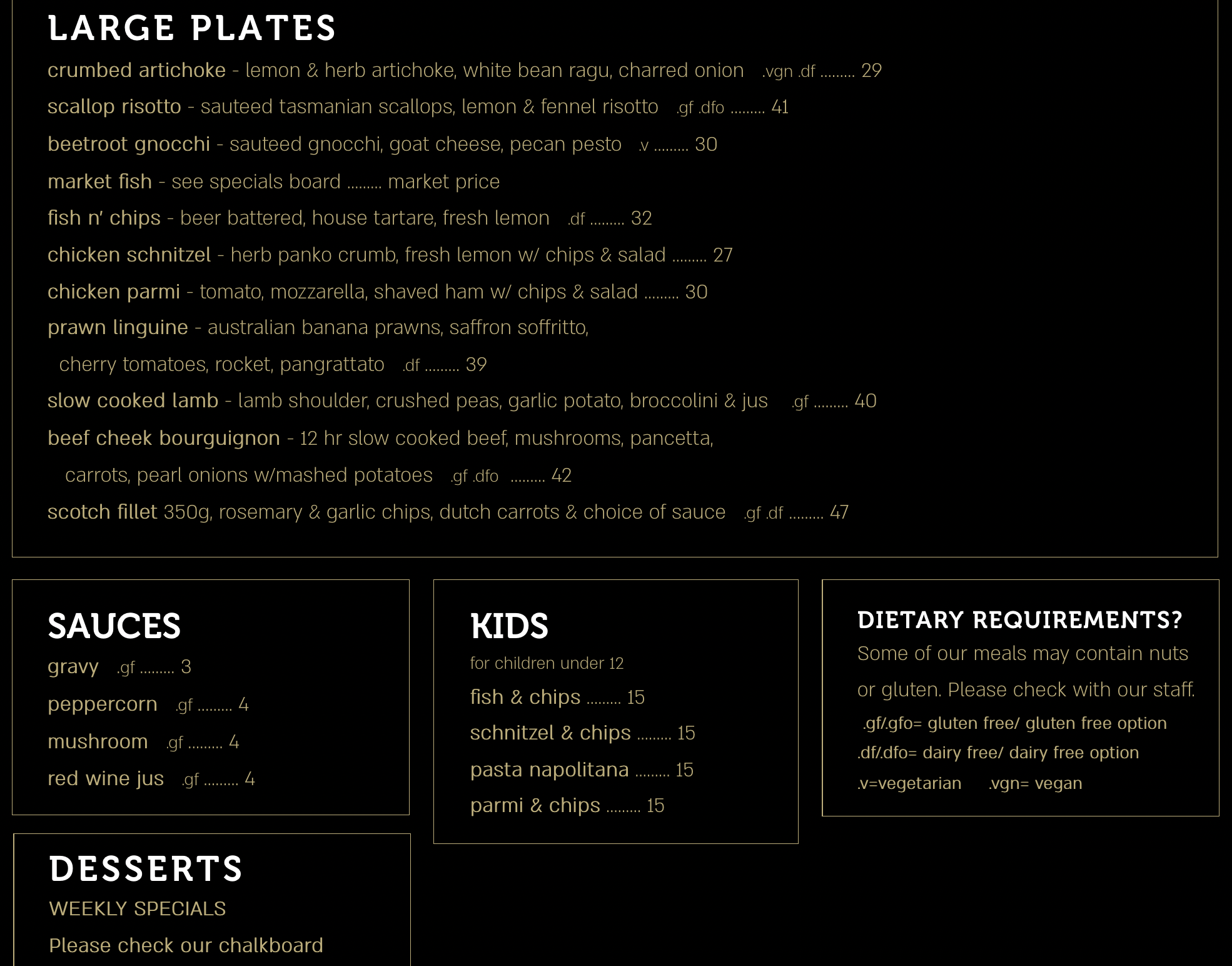 Royal Oak Hotel Menu - Launceston, Tasmania