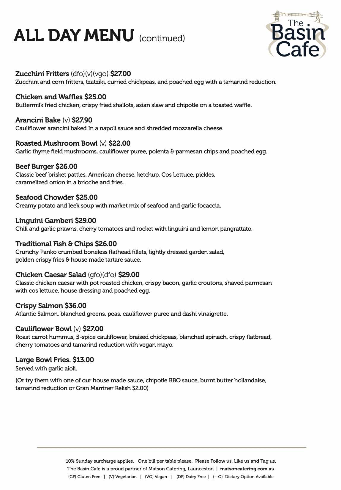 BASIN CAFE MENU BELOW