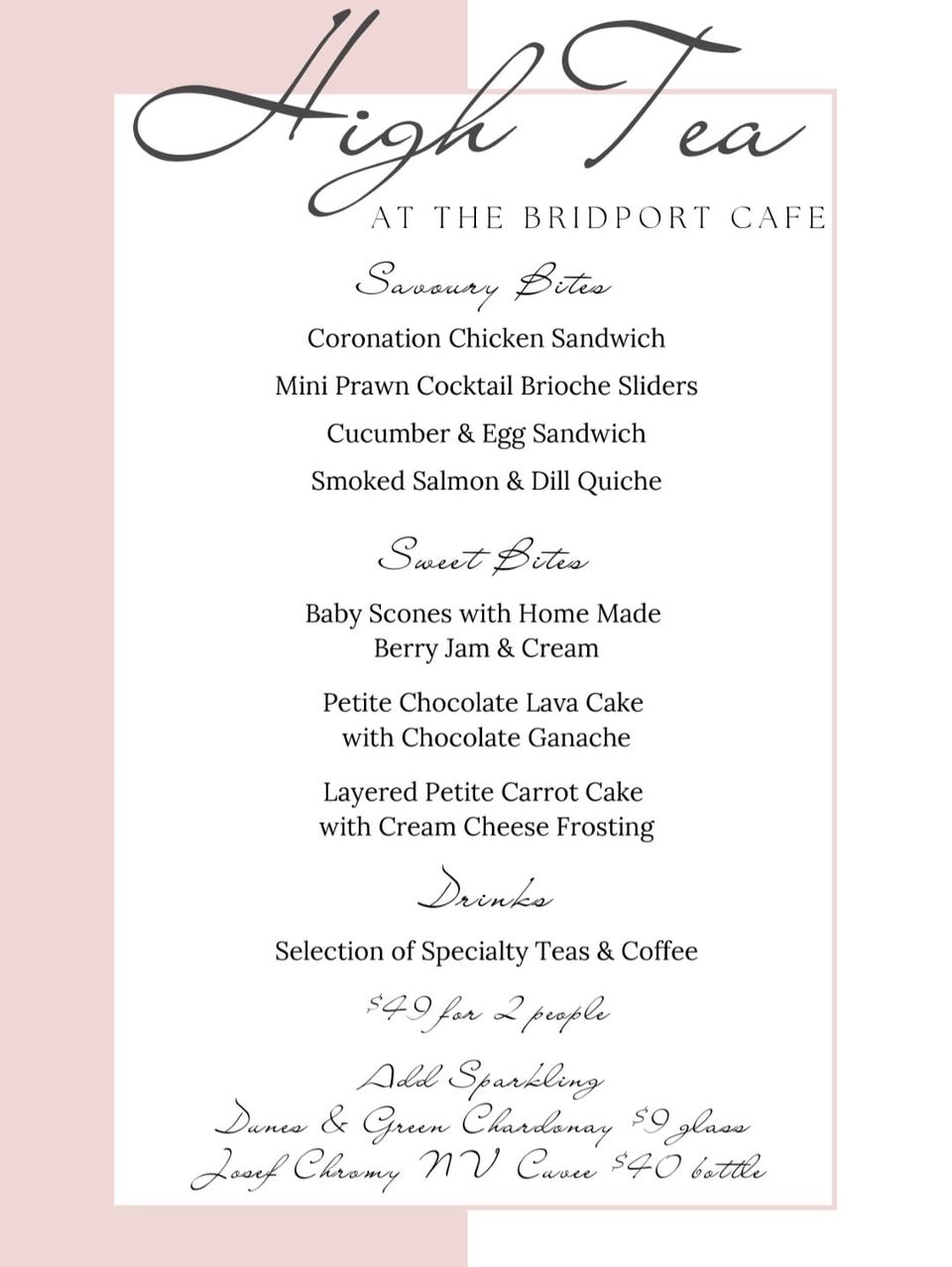 Featuring a high tea selection on Saturdays from 11.30 am.