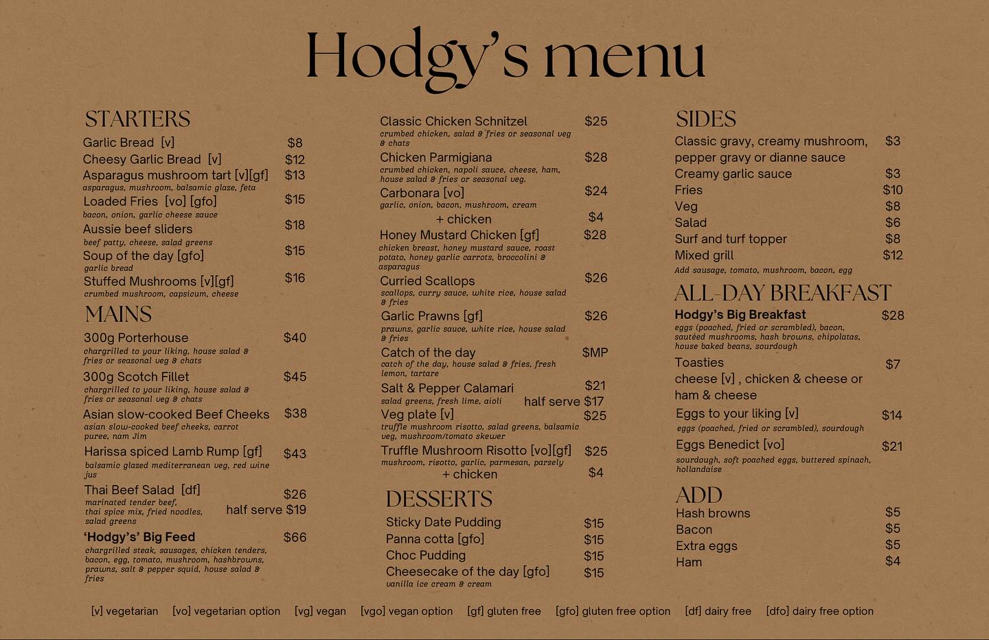HODGY’S BAR & RESTAURANT MENU BELOW