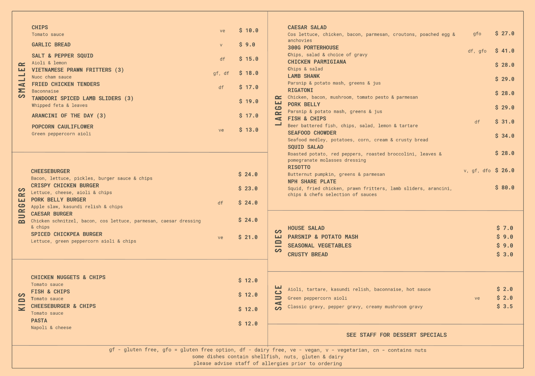 NORTHERN PUBLIC HOUSE MENU BELOW