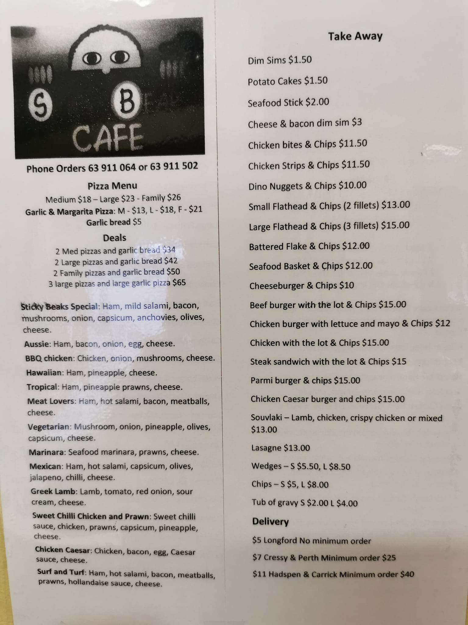 STICKY BEAKS CAFE TAKEAWAY/DELIVERY MENU