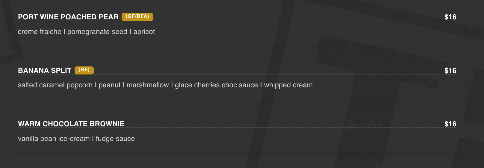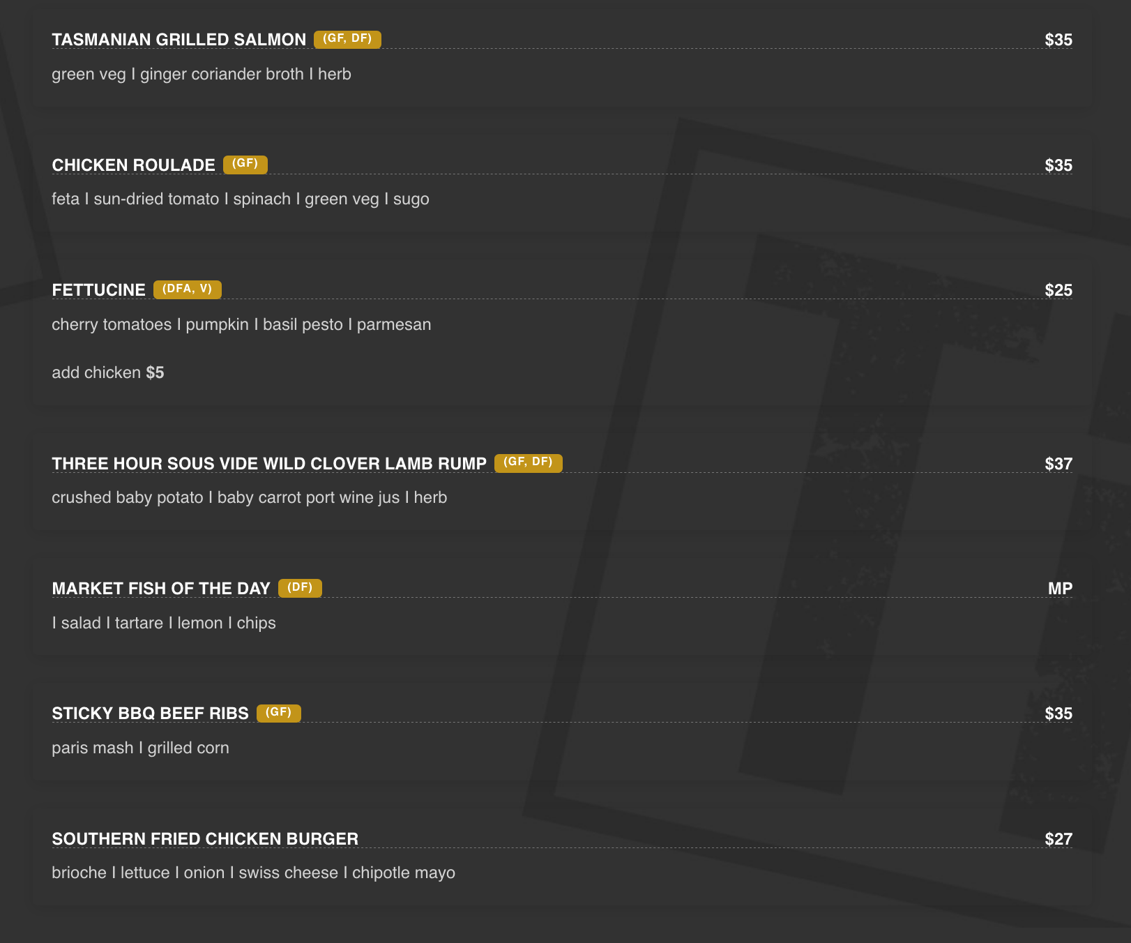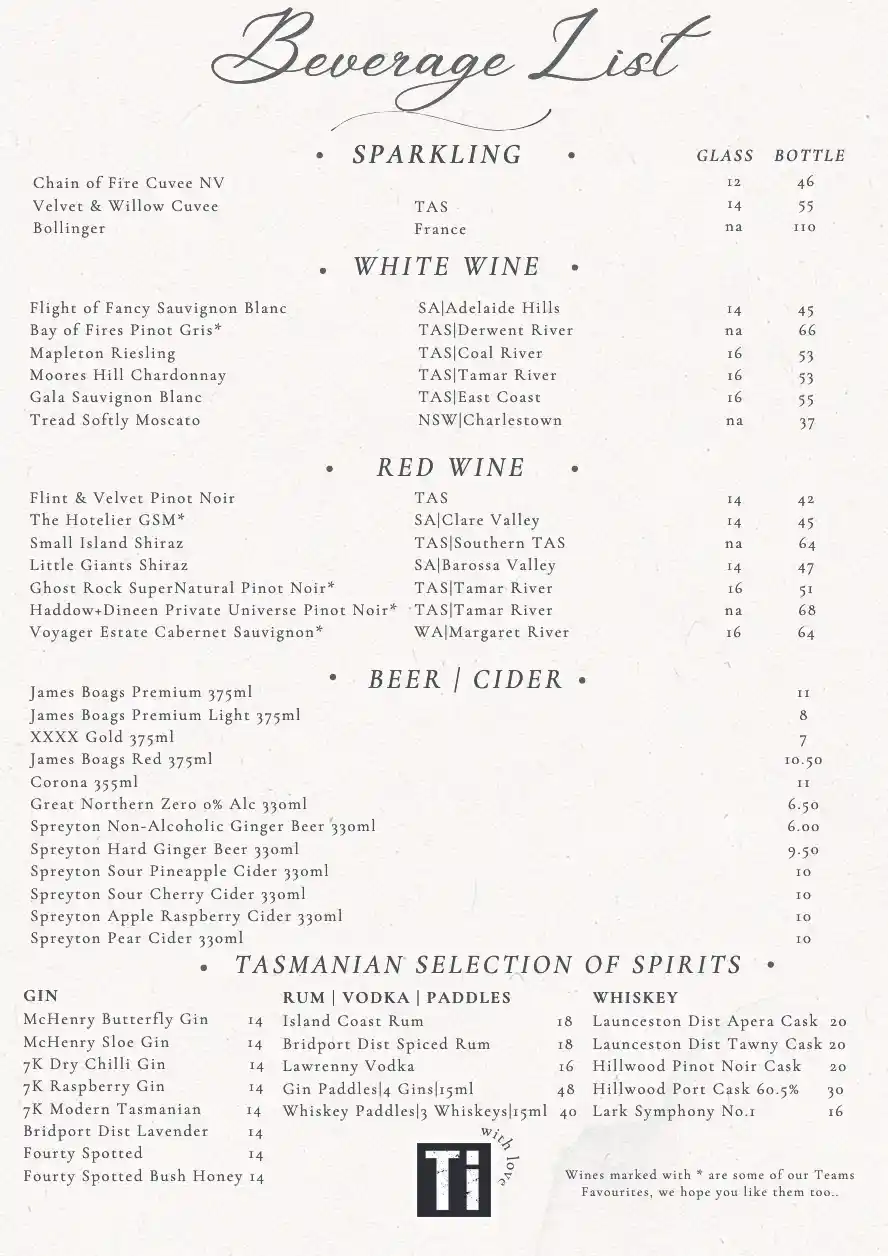 “Our kitchen sources the freshest of produce from all regions within Tasmania, with a seasonal menu offering you the perfect taste of Tasmania. Our Head Chef, makes a conscious effort to support small, local producers and farm gates.”