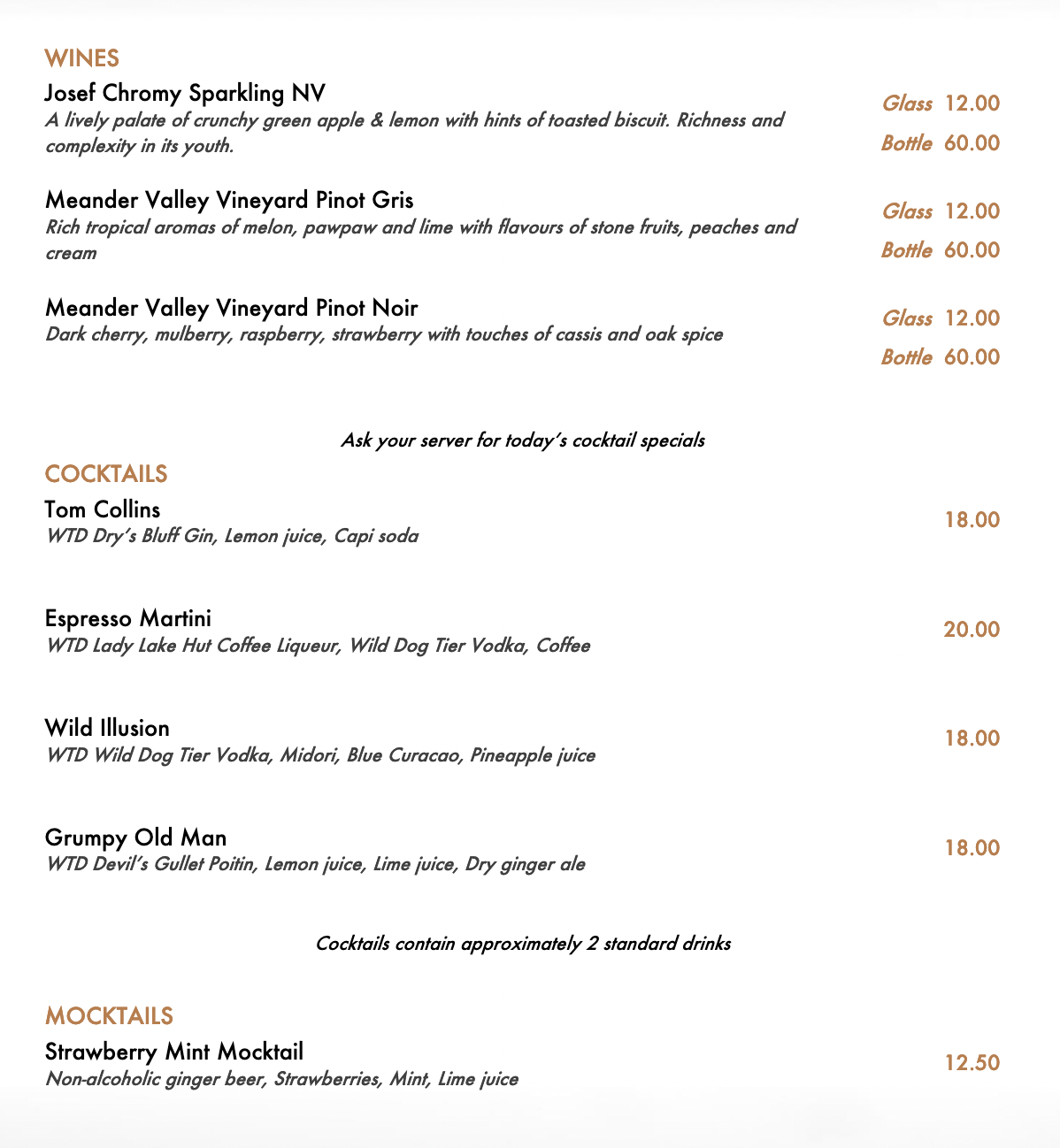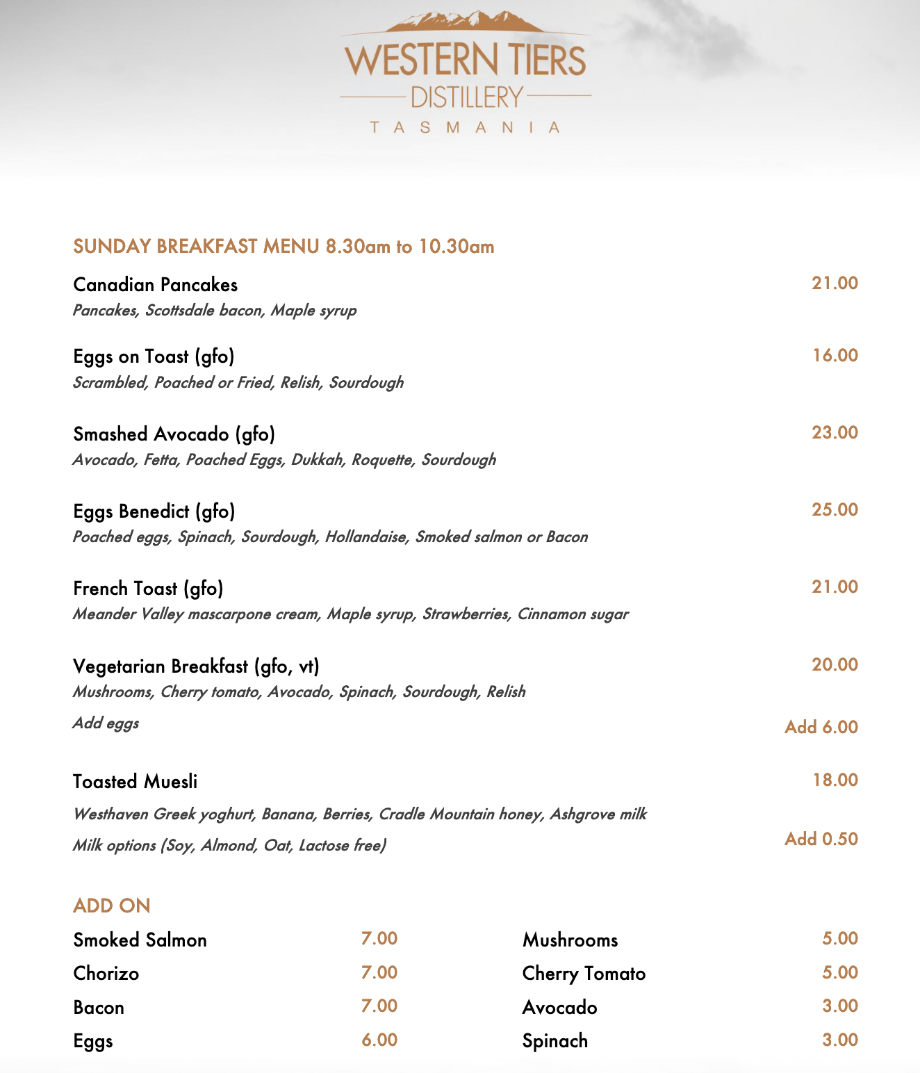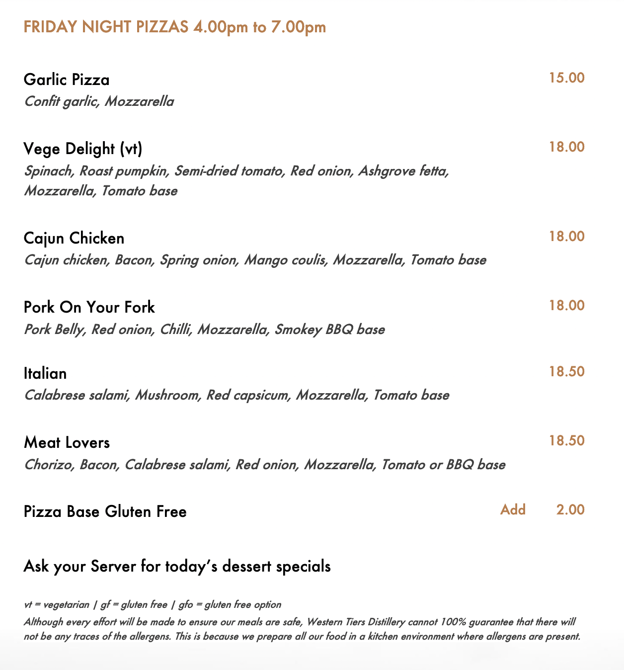 WESTERN TIERS DISTILLERY MENU BELOW